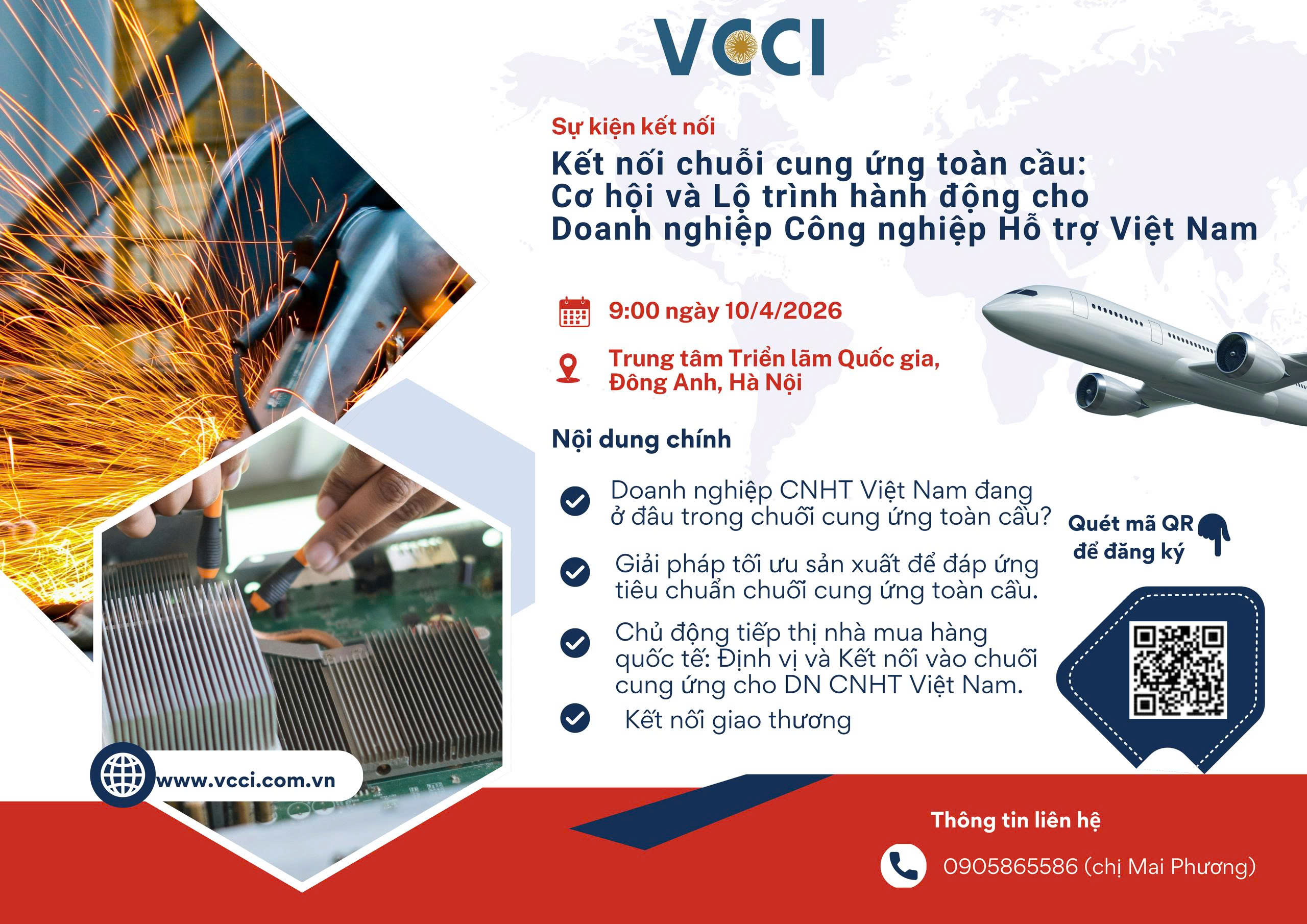 Trung tâm Hỗ trợ Doanh nghiệp nhỏ và vừa, VCCI trân trọng kính mời Quý Doanh nghiệp tham gia Sự kiện kết nối "Kết nối Chuỗi cung ứng toàn cầu: Cơ hội và lộ trình hành động cho Doanh nghiệp công nghiệp hỗ trợ Việt Nam". Thông tin chi tiết như sau: