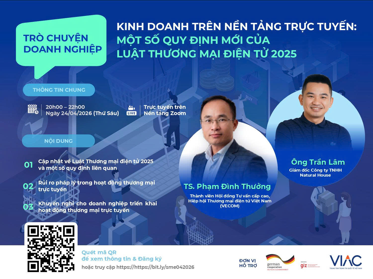 Trung tâm Hỗ trợ Doanh nghiệp nhỏ và và vừa trân trọng kính mời Quý doanh nghiệp tham gia buổi trò chuyện trực tuyến: "Kinh doanh trên nền tảng trực tuyến: Một số quy định mới của Luật Thương mại Điện tử 2025". Thông tin như sau: