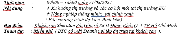 Với mục đích hỗ trợ cộng đồng doanh nghiệp Việt Nam và EU tìm hiểu, cập nhật thông tin thị trường cũng như tìm kiếm các đối tác phù hợp, tin cậy, Liên đoàn Thương mại và Công nghiệp Việt Na tổ chức “Diễn đàn Quốc gia về thúc đẩy quan hệ đối tác Việt Nam – EU và phát triển bền vững ”: